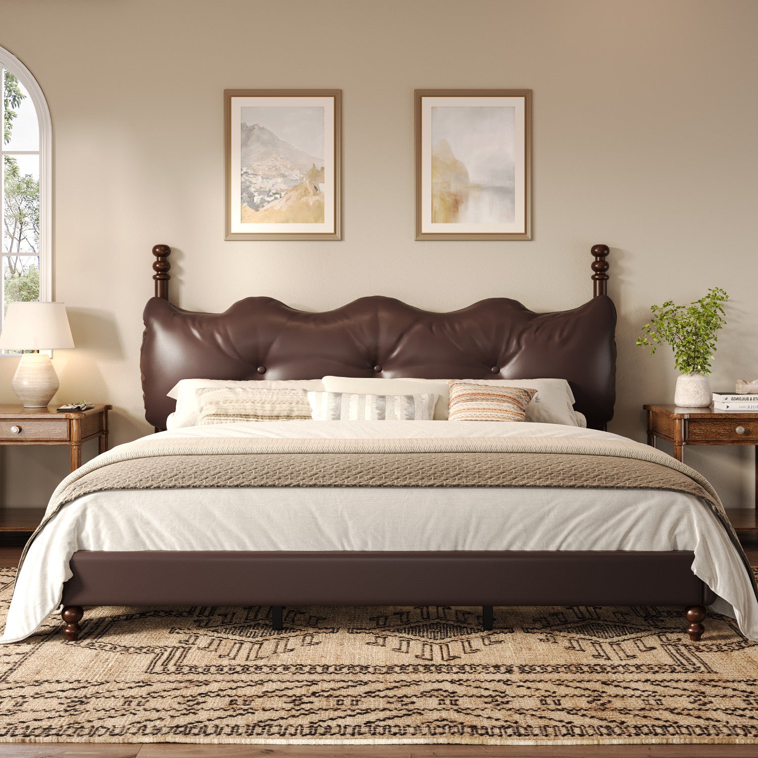 Upgrade your bedroom with faux Leather Platform Bed Frame. Featuring a sleek, button-tufted leather headboard paired with solid wood bedposts, this bed blends modern elegance with vintage appeal. Its sturdy design supports up to 800 lbs without the need for a box spring. Easy to assemble, the bed includes durable wood slats for enhanced comfort and long-lasting durability. Whether you're lounging, reading, or sleeping, the soft faux leather headboard provides excellent back support for ultimate relaxation.