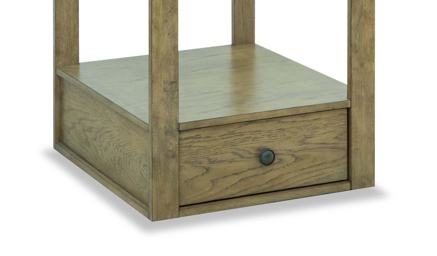 Esme 22" Traditional Glass Top End Table with Storage and Shelf - Light Brown Wood