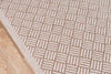 The island style of this indoor/outdoor area rug adds a touch of tropical texture in interior and exterior settings. The geometric rug design is seemingly simple from afar, but closer inspection reveals an intricate basketweave design interwoven from contrasting tan and ivory threads. Precision made from polypropylene fibers, the all-weather rug is a stain-resistant floorcovering suitable for styling both interior and exterior environments.