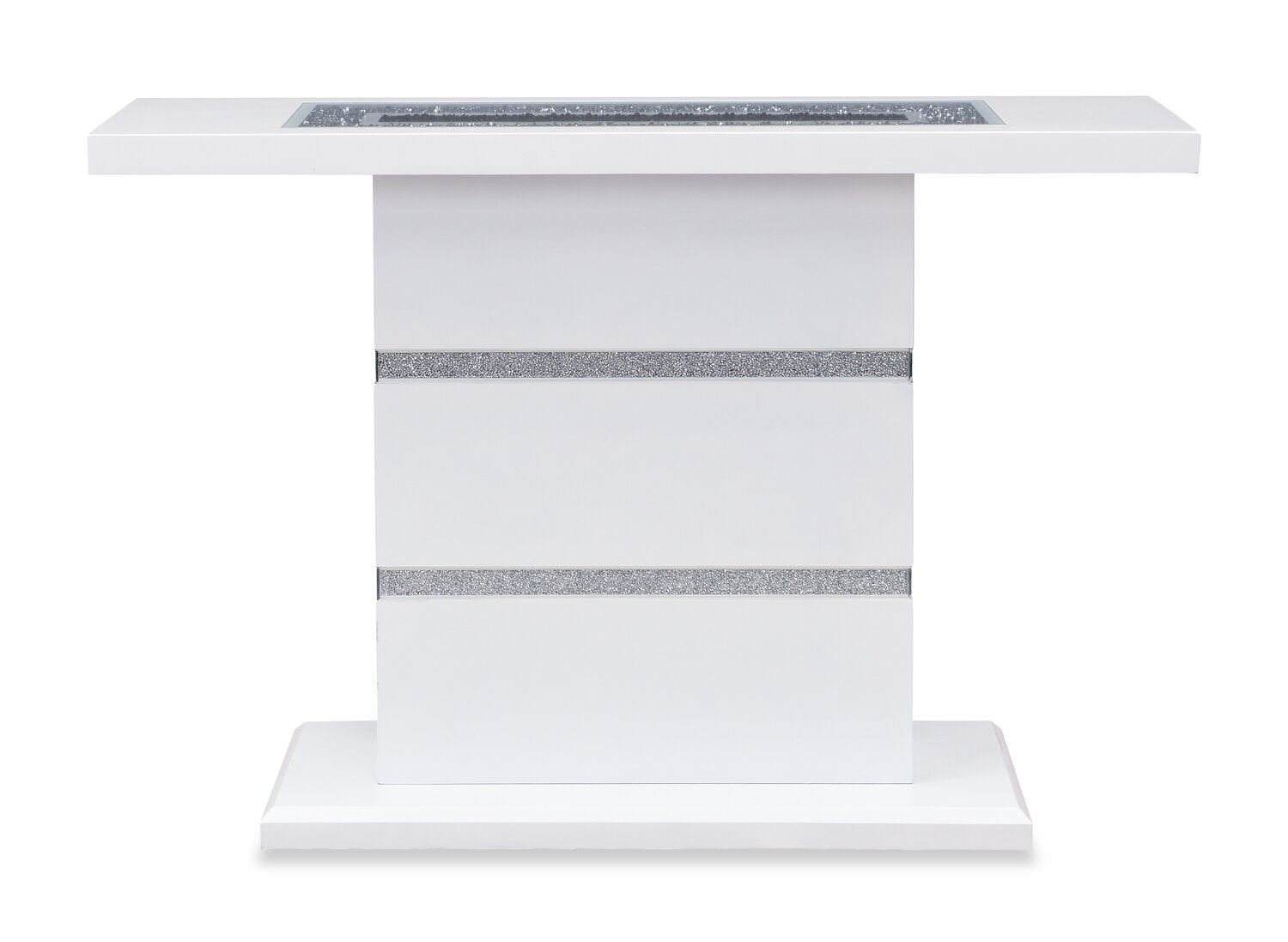 Rosie 47.5" Glam Mirror & Glass Top Sofa Table - Silver Metal with Diamond Look Legs