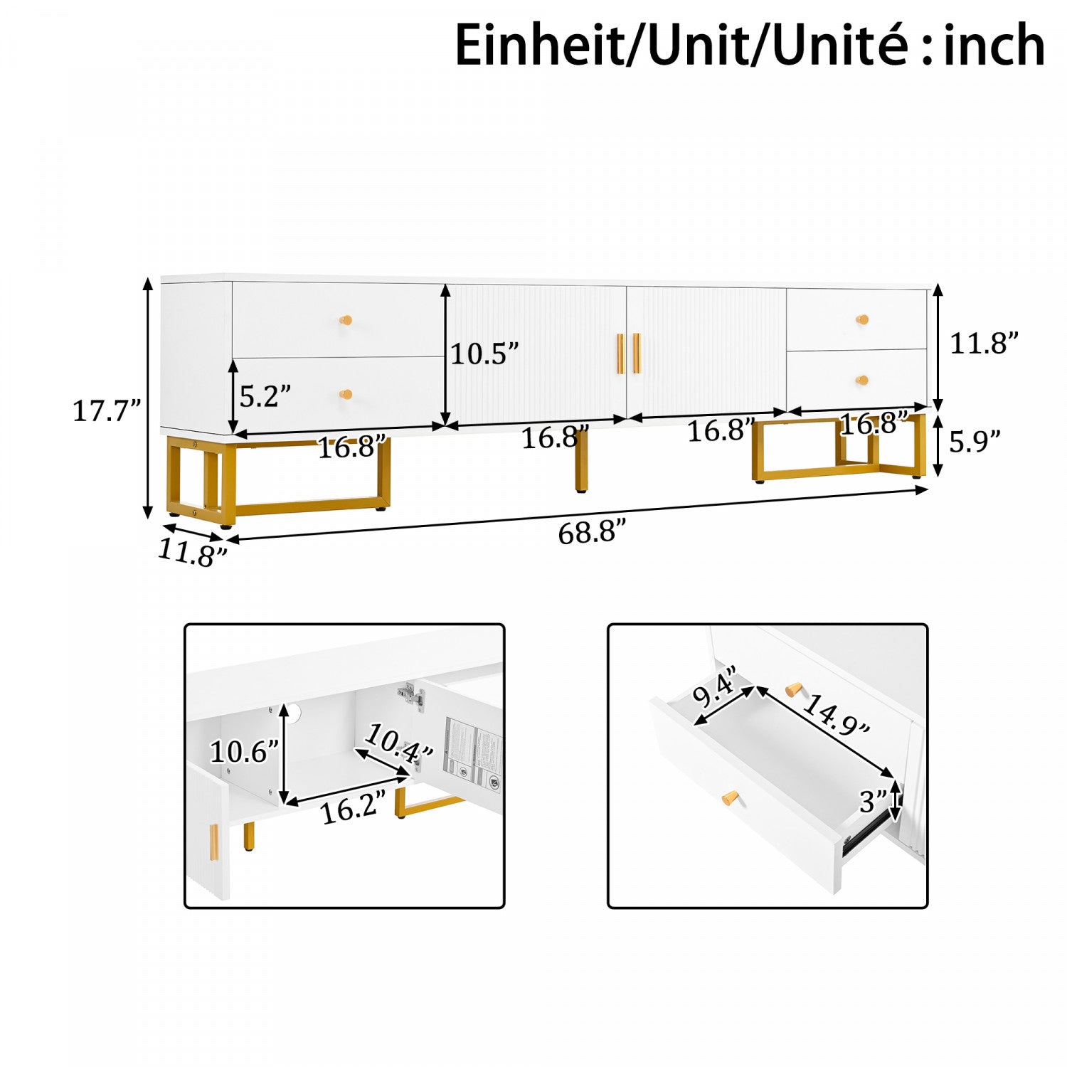 Gavin 68.8" TV Cabinet with Storage Drawers and Media Organization Function,White Tv Stand