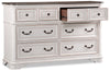 Embrace the feeling of having a secret, countryside retreat in your own home with this stunning Grace dresser. The antique white finish and matching antiqued brass handles are hand-rubbed to give this piece the feeling of a modern classic. A distinct rounded-butterfly design of the brushed oak top gives lots of extra space for your knick-knacks. With six spacious dovetailed drawers for holding all your treasured possessions, this dresser will help make your bedroom into the relaxing cottage of your dreams. Enjoy this piece on its own or pair it with the matching mirror (sold separately).