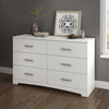 A dresser with modern lines and finish. This gramercy 6-drawer dresser has a modern look and blends in easily with any decor. The contemporary lines are softened by a slightly curved kick plate, and straight metal handles add character and value to the furniture. The neutral, modern style makes it suitable for men’s, women’s or kids bedrooms, providing plenty of storage space in this attractive piece of furniture. Practical storage and organization featuring 6 large drawers with straight metal pull handles, this dresser provides plenty of room for clothes or linens. Including metal drawer slides for smooth and quiet use. With 6 different compartments, staying organized has never been easier. You can even use the flat top for additional organization or feature your favorite decorations.