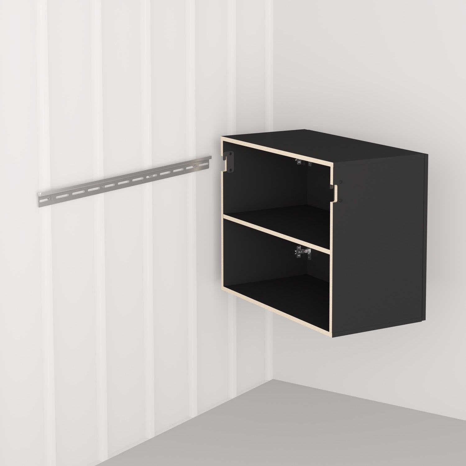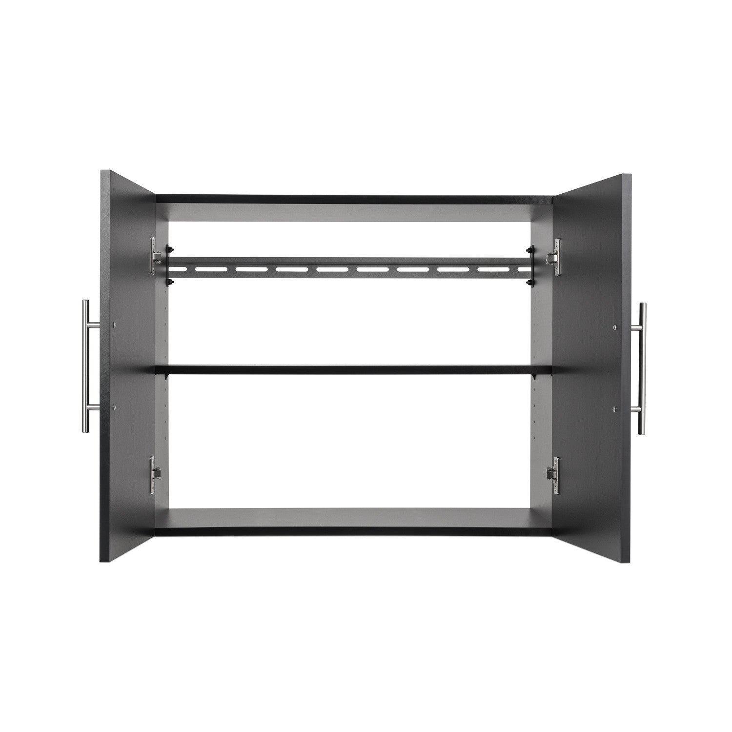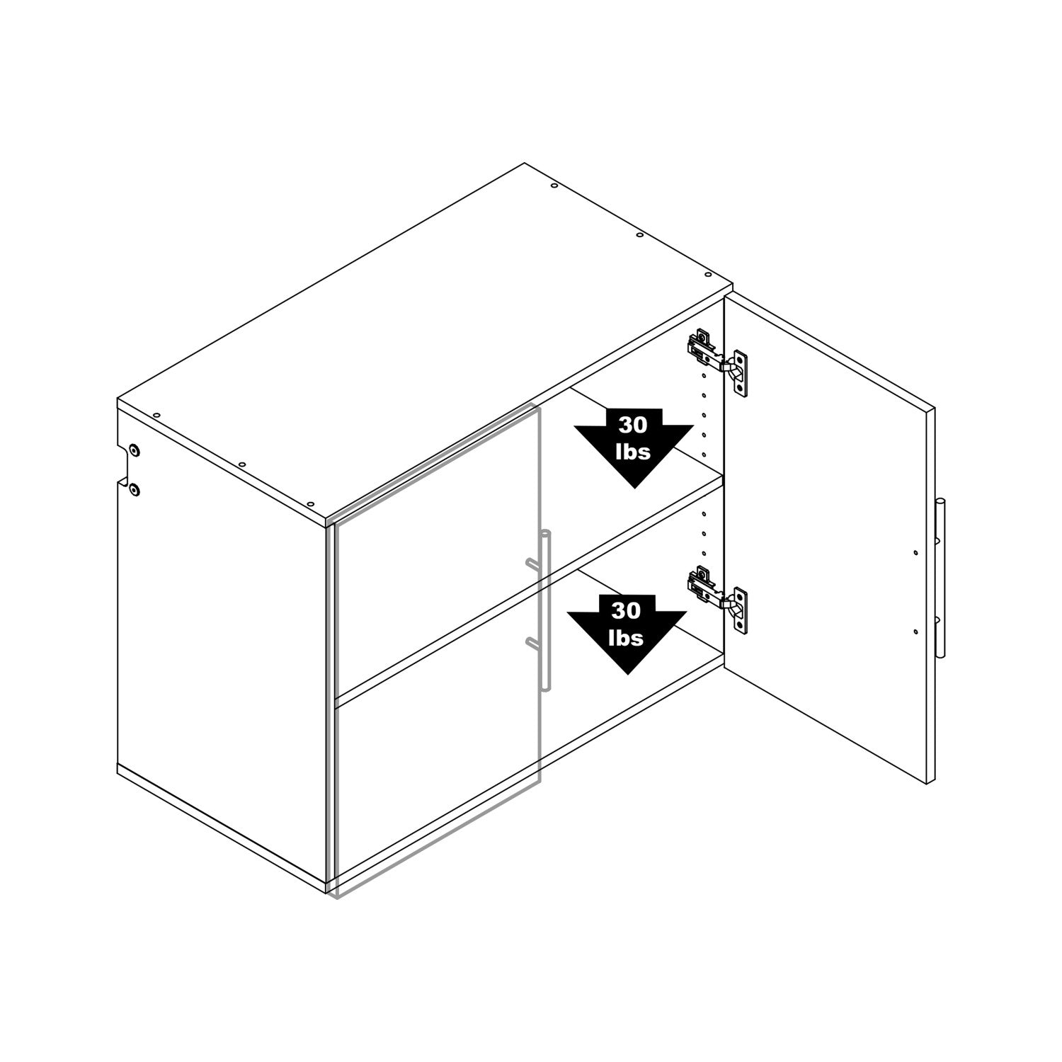 The HangUps 30" Upper Cabinet offers versatility for your ever changing storage needs in the garage, laundry room, office or workshop. The Upper Cabinet mounts securely to the wall with a heavy duty metal rail and hook system. The wall mounted feature ensures easy cleaning beneath the cabinets and protects your stored items from water & dirt. The HangUps Collection is constructed using laminated composite wood and features metal handles and adjustable hinges. This product ships ready-to-assemble and includes all hanging rails and fastening bolts. Add other cabinets from our HangUps Collection to create a storage system to convert any cluttered room into an organized space.