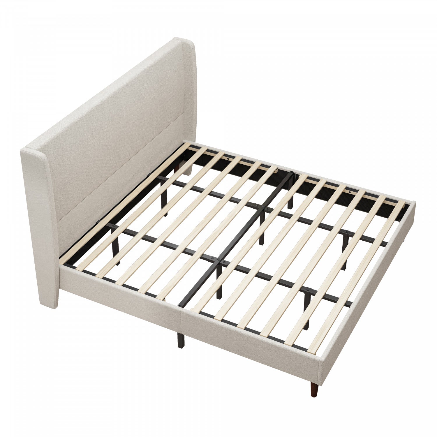 Transform your bedroom into a relaxing retreat with the Upholstered King Bed Frame. Featuring a tall, cushioned headboard wrapped in soft beige chenille fabric, this bed adds both luxury and comfort to your space. Built with solid wood, MDF, and plywood, it ensures strength and long-lasting durability. The 12 sturdy wooden slats provide stable mattress support and remove the need for a box spring. With its refined look and easy assembly, the Harper bed brings elegant comfort and timeless charm to any modern home.