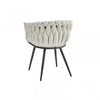 Introduce a little artistry to your dining room with the exquisite Hildy Collection. This stylish arm chair is a fantastic way to spruce up your modern dining area thanks to its contemporary low profile. The barrel design is cloaked in soft beige velvet upholstery that weaves around the frame with a unique braided effect. Despite its artistic appearance, the contoured back and arms are padded with foam, as is the seat, providing ample cushioning and support. Metal framing and angled black powder-coated metal legs guarantee long-lasting durability, allowing the Hildy to effortlessly blend practicality and elegance as it becomes your dining room’s new statement piece. Other colours also available.