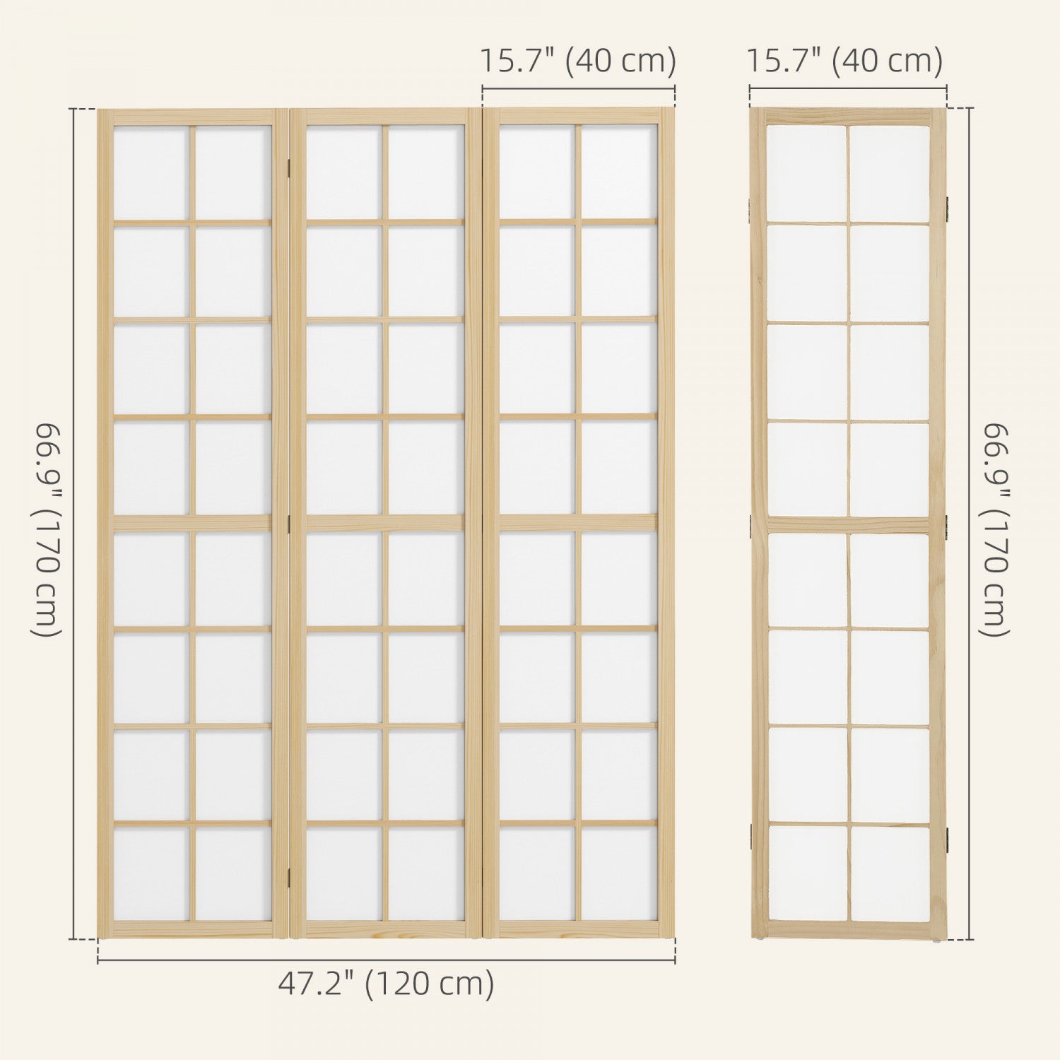 ● Single Panel Size: 15.7" W x 66.9" H x 0.7" D (40 x 170 x 1.7 cm)