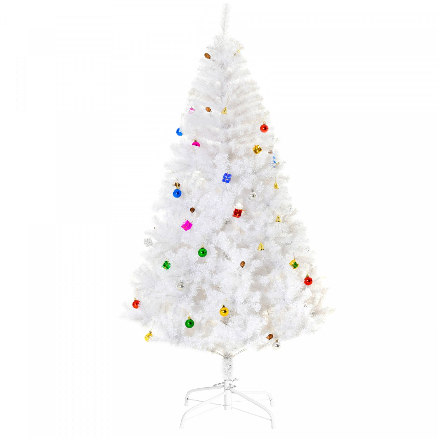 | Key Features | ● White creates a cool atmosphere, add special to traditional holiday ● 6ft tall artificial Christmas tree in a realistic tree style ● With balls, golden bells, drums, boxes, pine cones for decoration ● Realistic plastic 930 branches give a full and lush look to the tree ● Base is detachable and foldable for easy storage ● Sturdy and durable base for better stability ● Branches is flame retardant, to ensure secured ● In order to get a full appearance, please spread out all individual tips |
