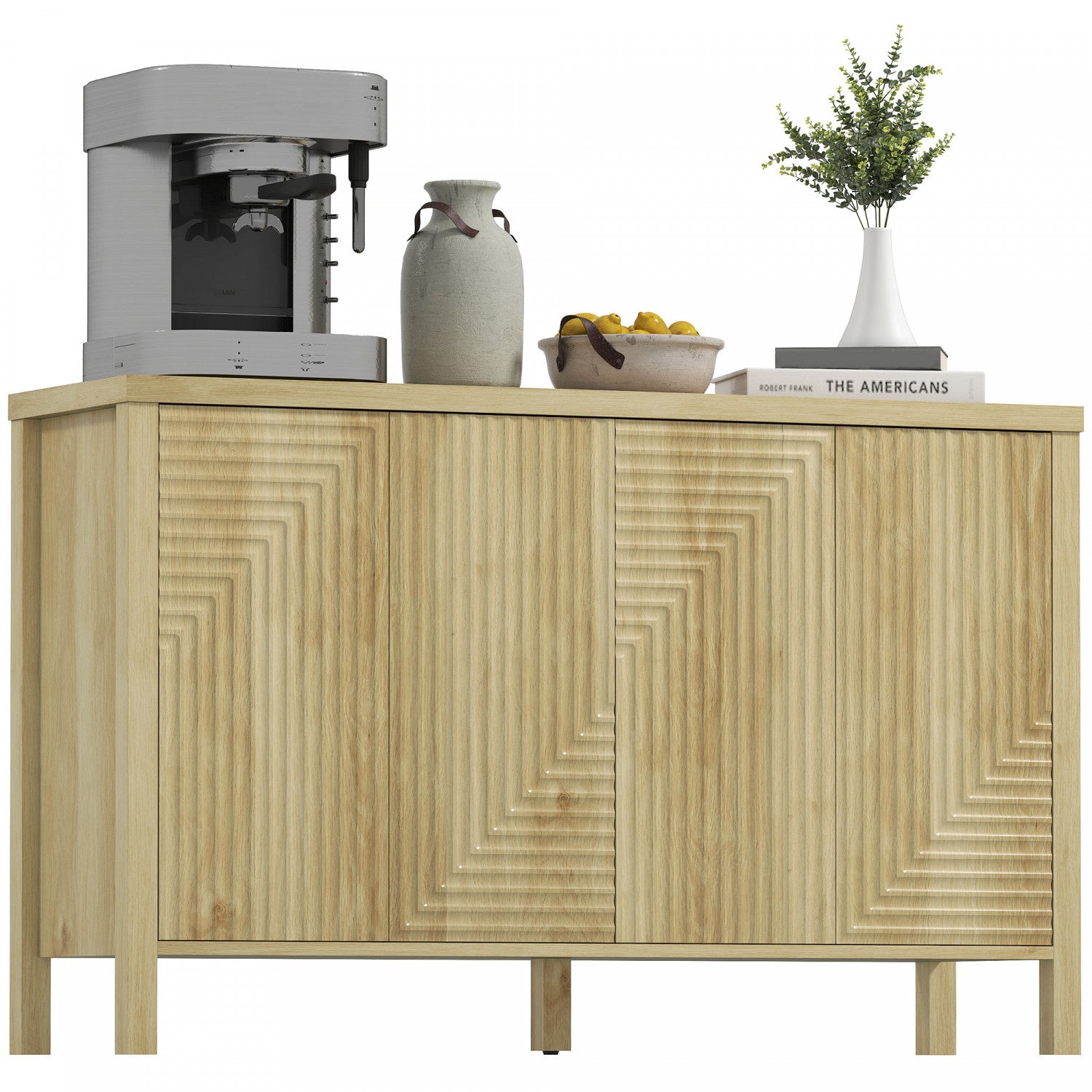 HOMCOM Fluted Sideboard Buffet Cabinet with Push to Open Doors Natural