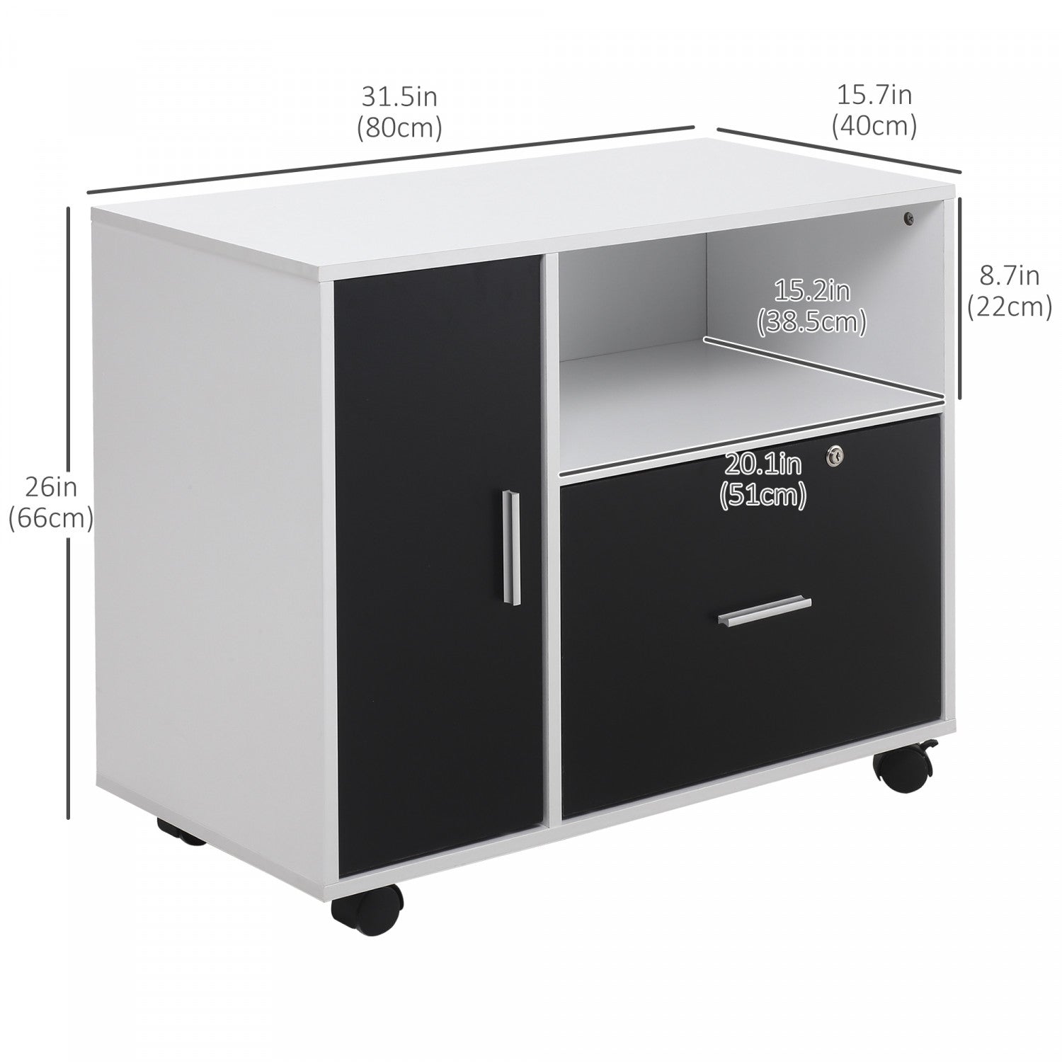 Homcom Lockable Filing Cabinet With Hanging Rail