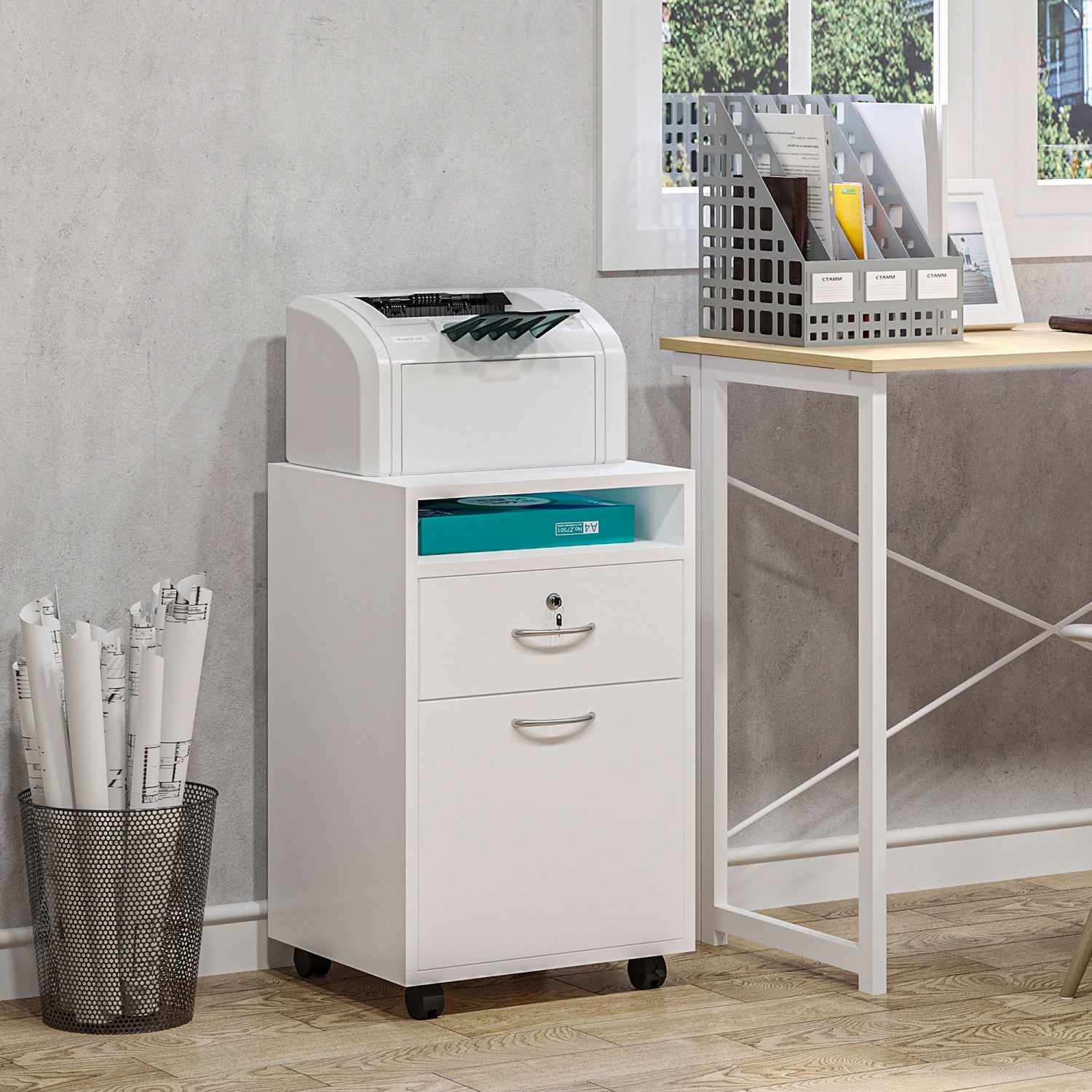 Homcom Mobile Filing Cabinet With Lockable Drawer