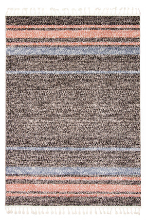 The combination of dense pile, drop stitch and double pointing gives this Janey area rug a complex and inviting texture. The intricate weaving and authentic tassels enhance the traditional design. Reds, blues, browns and greys are expertly combined to give it a warm and welcoming aesthetic.