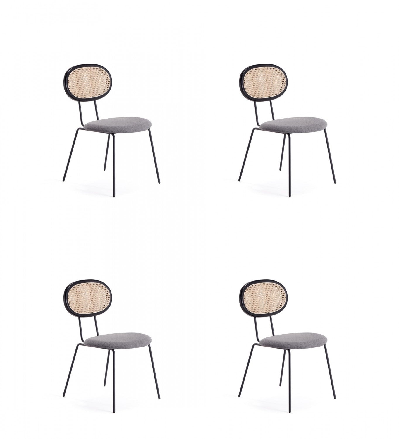 Jardin Industry Chic Cane Back Upholstered Dining Chair in Black and Gray - Set of 4