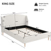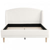 Introducing King Bed Frame, where modern elegance meets everyday comfort. This stunning platform bed features a gracefully curved wingback headboard, luxuriously upholstered in soft, on-trend boucle fabric. Crafted with a durable MDF and rubber wood frame, it provides exceptional stability and reliable support for your mattress, eliminating the need for a box spring. The clean, minimalist white design effortlessly complements any bedroom decor, from serene Scandinavian to contemporary styles. A thoughtful 6.3-inch under-bed clearance allows for easy cleaning with a robot vacuum, simplifying your routine. Designed for lasting quality and sophisticated style, this bed frame creates a serene and stylish bedroom retreat. Assembly is required.