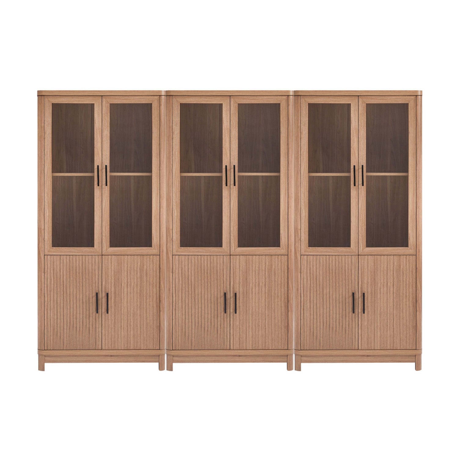 Jodie Mid-Century Modern 31" Bookcase Cabinet in Maple (6-Shelf) - Set of 3