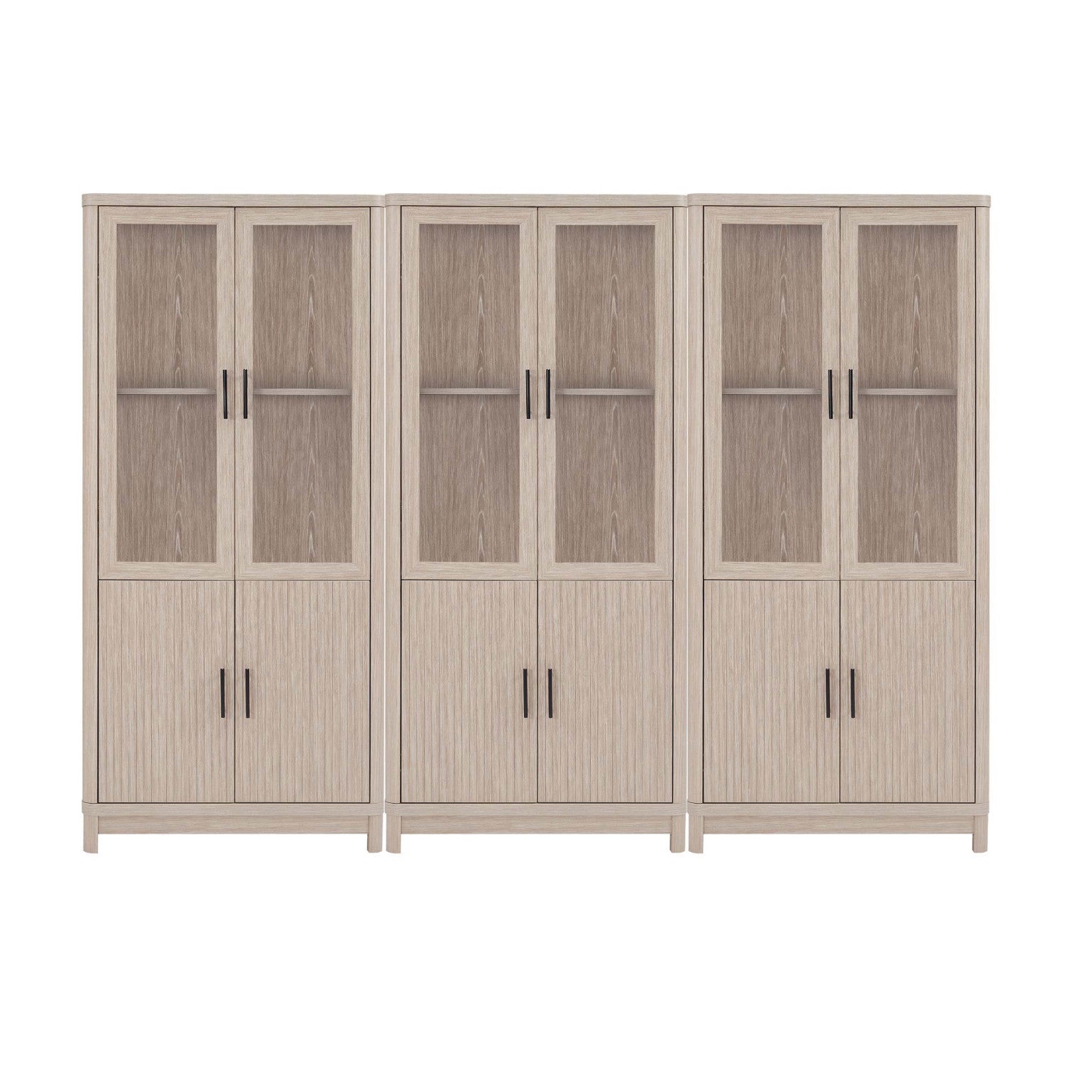 Jodie Mid-Century Modern 31" Bookcase Cabinet in Whitewashed Oak (6-Shelf) - Set of 3