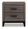 Give your bedroom upscale, urban charisma with this Kate nightstand. The Asian hardwood frame is finished in a smoky grey-brown colour, creating a character-rich canvas for you to store your bedside essentials. The dark, tapered legs and matching black hardware create a two-toned look that takes this style to an even higher level of luxury.