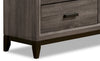 Give your bedroom upscale, urban charisma with this Kate dresser. The Asian hardwood frame is finished in a smoky grey-brown colour, creating a character-rich canvas for you to organize your clothing. The dark, tapered legs and matching black hardware create a two-toned look that takes this style to an even higher level of luxury. Enjoy this dresser on its own or pair it with the mirror from the same collection (sold separately).