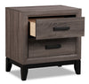 Give your bedroom upscale, urban charisma with this Kate nightstand. The Asian hardwood frame is finished in a smoky grey-brown colour, creating a character-rich canvas for you to store your bedside essentials. The dark, tapered legs and matching black hardware create a two-toned look that takes this style to an even higher level of luxury.