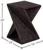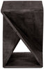 Sophisticated presentation is revealed at every angle with this funky Kelso side table. The sides of this table appear to twist in angular, origami-like folds to show triangular nooks and diagonal slopes. Perfect as an end table, plantstand or home decor display, this table is sure to get attention with its alluring shape. The mango wood construction provides reliable sturdiness while the mahogany colour finish is the perfect complement to this clever piece of craftsmanship. Whether holding up a splendid sculpture or a simple glass of water, this table looks good doing it.