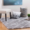 Indulge your senses with this gorgeous shag rug. The background and coveted lattice design create a simple yet elegant combination, making this rug a great addition to any room in your home. A smooth high pile upscale polyester construction and state of the art weaving technology make this rug pleasing to the touch and luxurious to the eye. Construction means a smooth, sturdy, long-lasting rug.