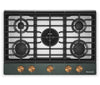 Five Versatile Burners: Edge-to-Edge Cast-Iron Grates: Premium Weighted Knobs: 6,000 BTU Simmer Burner: 17,000 BTU Power Burner: Wall-Oven Compatible Design: Electronic Ignition: Sealed Burner Construction: ADA Compliant: LP Conversion Included: |