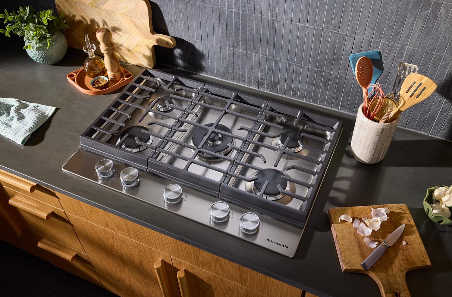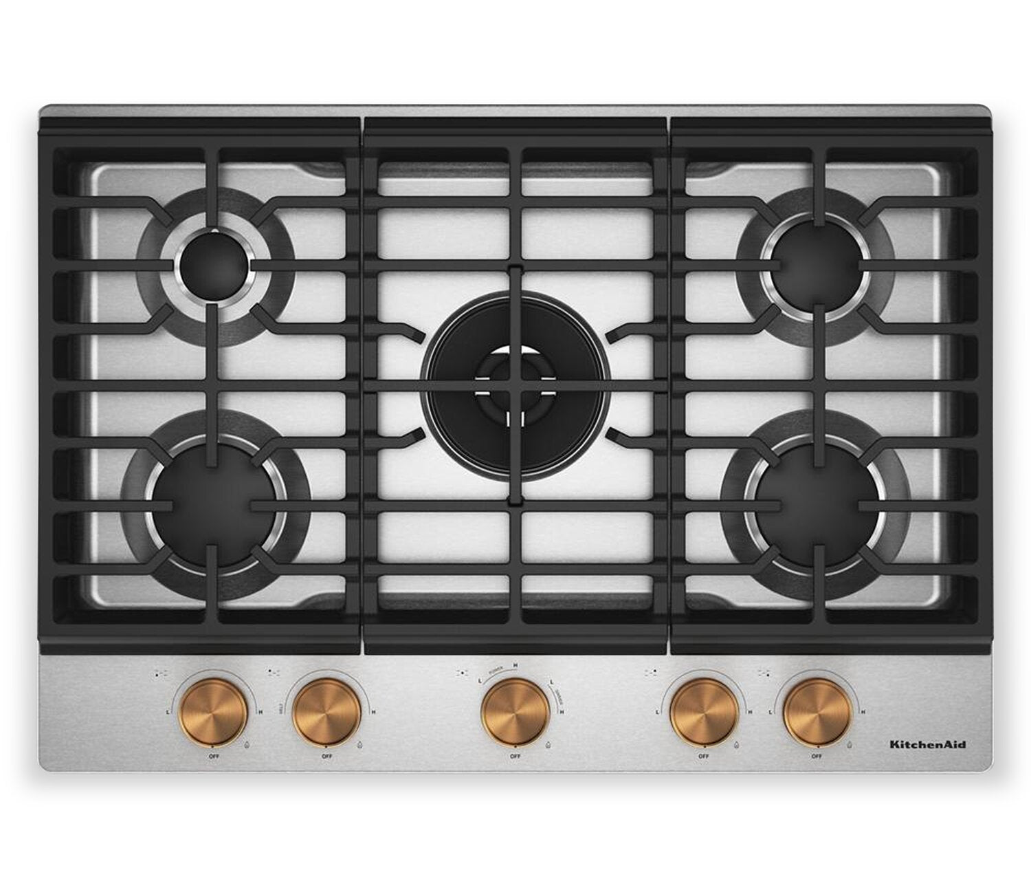 KitchenAid 30" Gas-on-Metal Cooktop with Integrated Wok Grates – Stainless Steel - KCGK530SSS