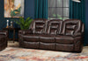Create a warm and welcoming setting for your family with this plush Leo reclining sofa. Swathed in Leath-Aire upholstery, this revolutionary leather-look fabric adds a stylish look to your home while remaining breathable. Each cushion is filled with high-density foam to provide a cozy space to unwind. Meanwhile, the outside seats recline so you can stretch out at the end of a long day. Get comfortable on this Leo Leath-Aire sofa.