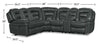 Leo 6-Piece Leather-Look Fabric Power Reclining Sectional with Storage Console and Dual Cupholders - Grey
