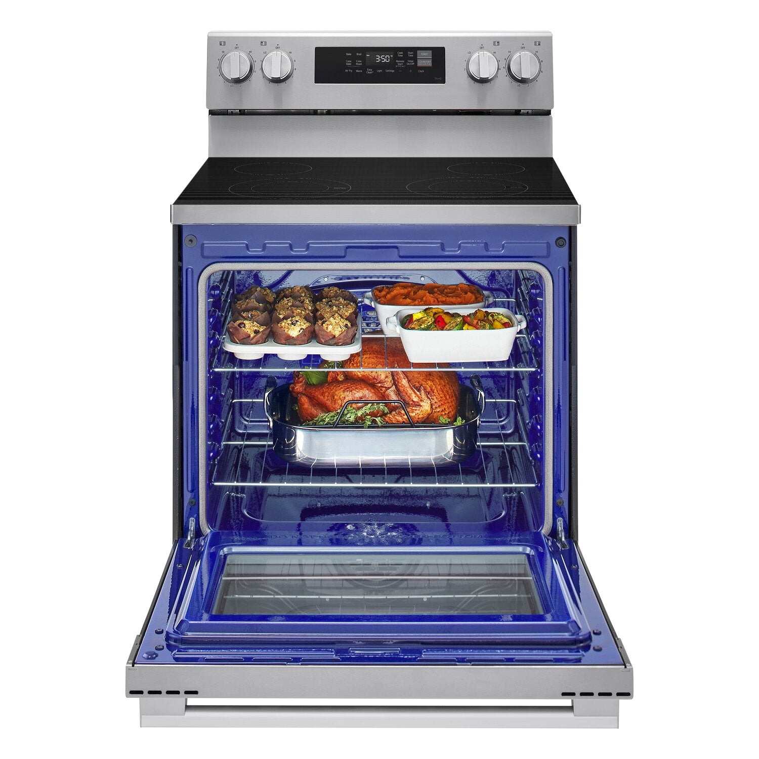 6.3 Cu Ft. Large Capacity: ProBake Convection: Air Fry: EasyClean: ThinQ Smart Technology Automatic Safety Shut-Off |