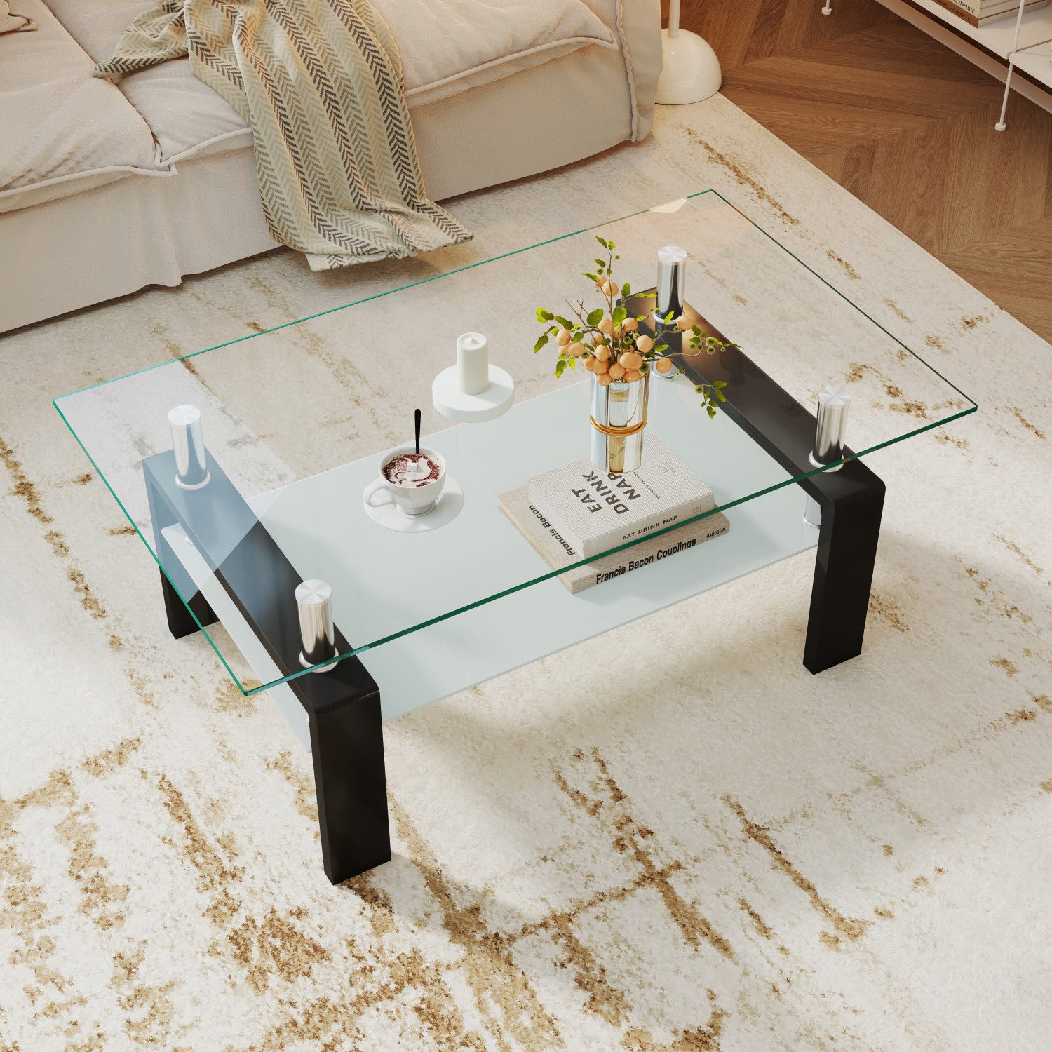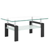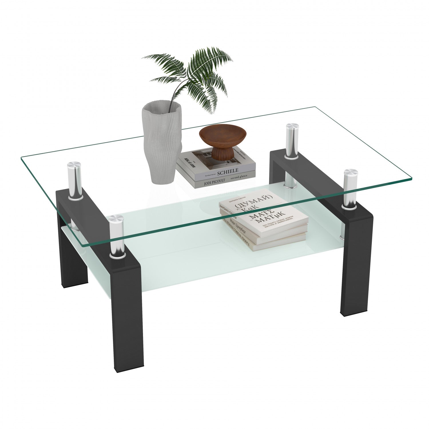 The Rectangle Glass Coffee Table brings modern elegance to your space with a clean tempered glass surface and stylish oak accents. Its spacious double-layer design offers ample storage, perfect for placing everyday items on the upper layer and books or magazines on the lower. The strong metal tube frame ensures durability while the glass surface is easy to clean. Ideal for living rooms, offices, or even as a makeup table, this versatile piece is a functional and aesthetic addition to any home.