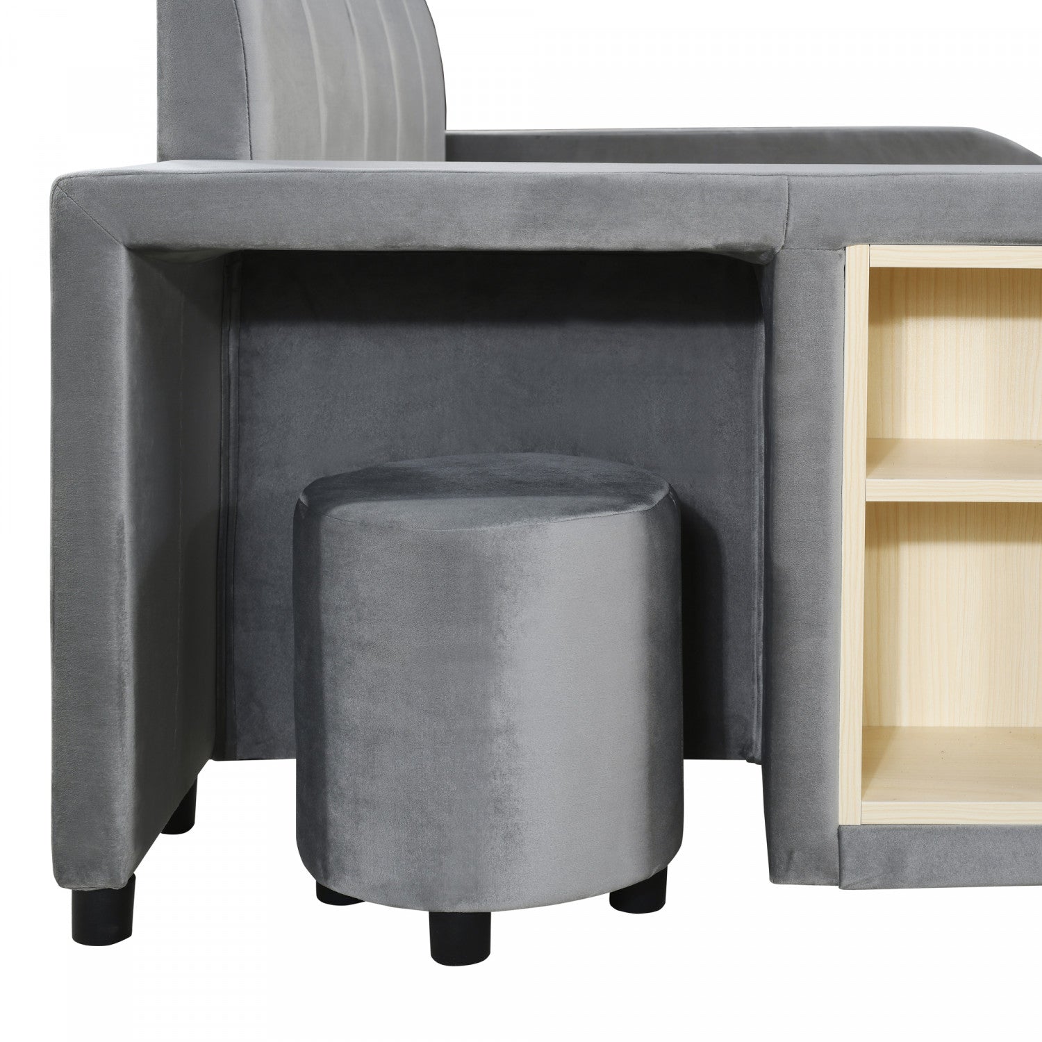 Lily Velvet Upholstered Grounded Bed with Desk and Stool,Full Size,Grey Full Bed