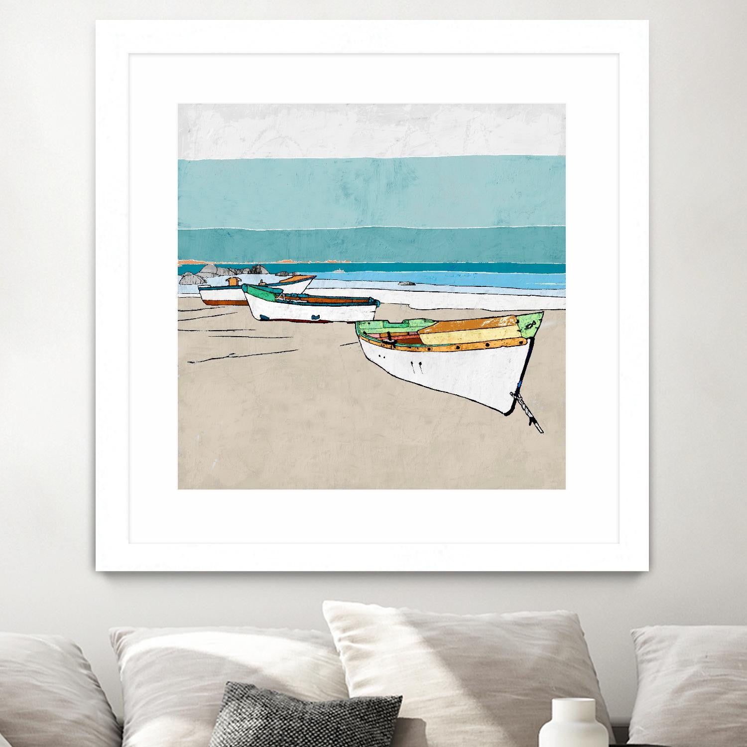 "Lined Up" Matted and Framed White 36x36 Wall Art
