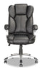 Work in comfort and style with this Lodwig deluxe office chair. Sitting doesn't need to cause you pain – adjust the chair using the tilting back support and gas lift. Swivel and roll your way around your office thanks to the moveable chair base. Plus, the cushioned back and seat offer a comfortable resting spot, while the black faux leather cover makes this chair an attractive addition to your home.