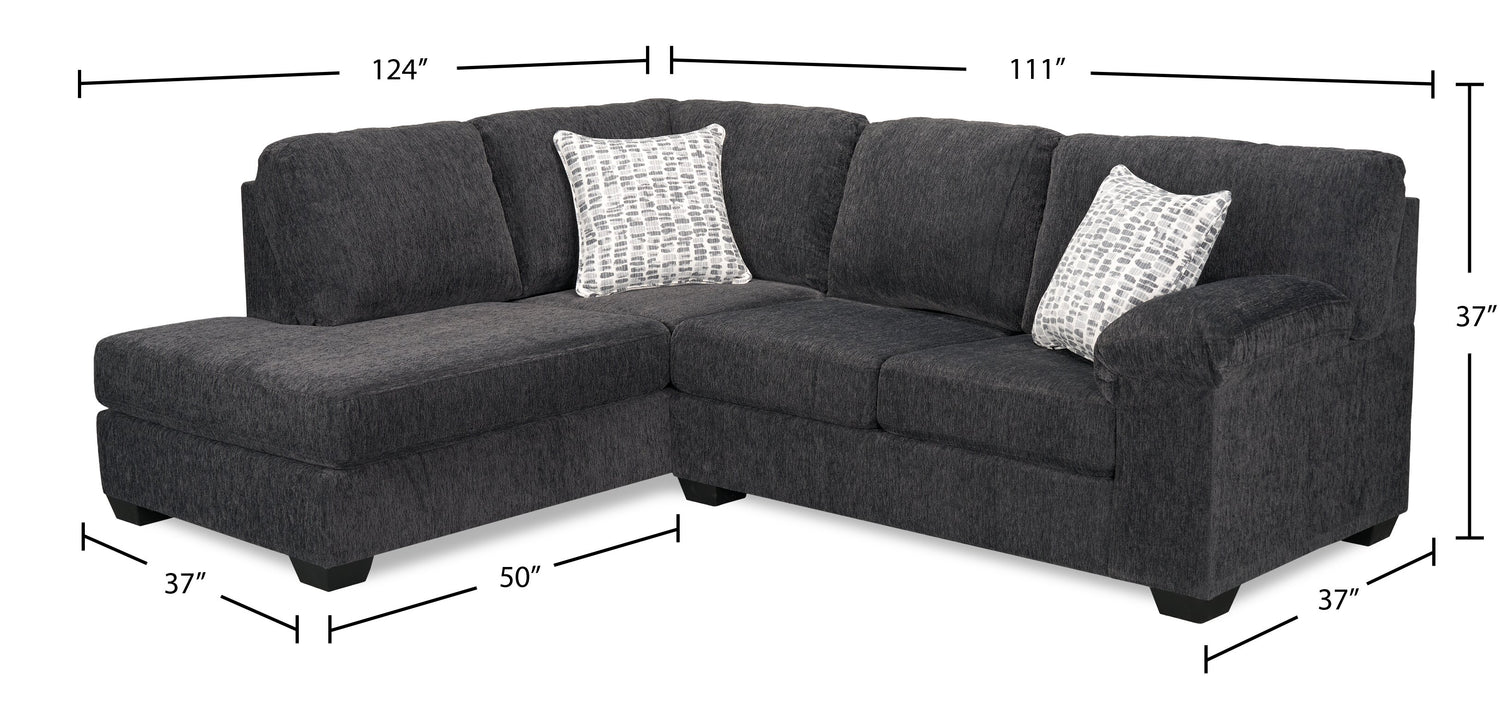 Made in Canada Morgan 2-Piece Left-Facing Chenille Fabric Sectional with Accent Pillows - Grey