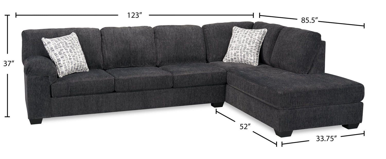 Made in Canada Morgan 2-Piece Right-Facing Chenille Fabric Sofa Bed Sectional with Accent Pillows - Grey
