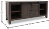 The Madison 60-inch TV stand is here to add some serious farmhouse style to your living room. Slide the double barn-style doors apart to reveal extra storage space and keep your DVDs tucked neatly out of sight but easily within reach. Integrated cord management keeps messy wires at bay, while the adjustable shelving makes fitting taller components or knick-knacks a breeze. With its handsome brown finish and exposed door rails, this country-chic TV console is a beautiful and trendy focal point to any living room.