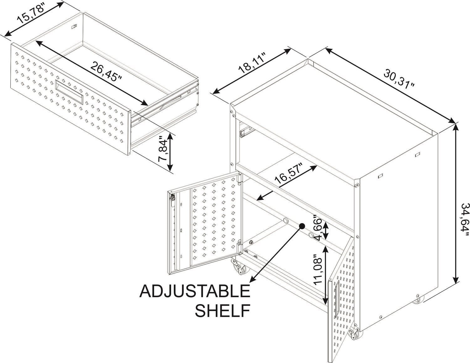 Manhattan Comfort Fortress Textured Metal 31.5" Garage Mobile Cabinet with Drawer & 2 Adjustable Shelves - Charcoal Grey
