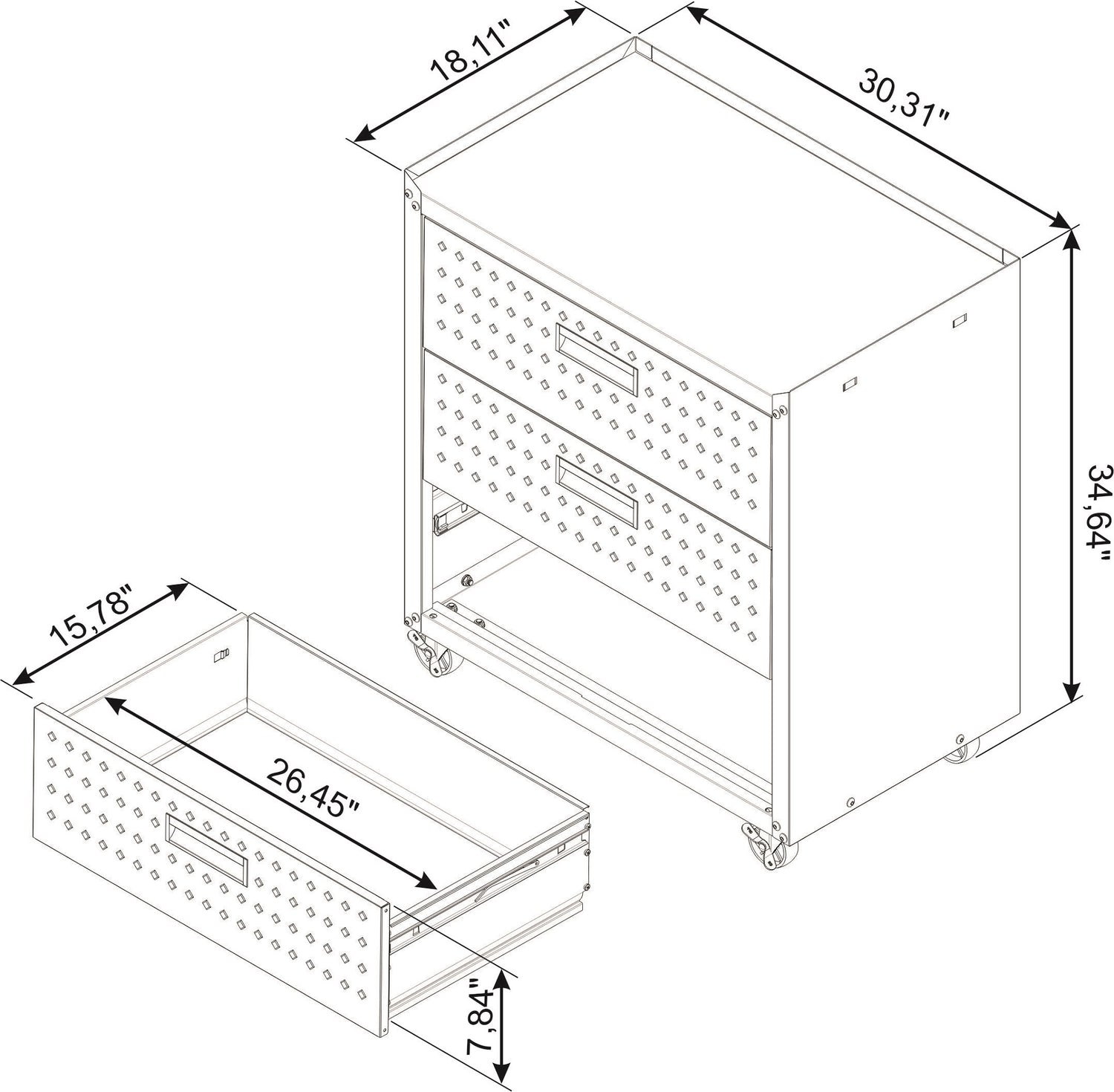 Manhattan Comfort Fortress Textured Metal 31.5" Garage Mobile Chest with 3 Drawers - White