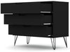 The Rockefeller dresser is the perfect accompaniment to any bedroom space, with ample storage and minimalistic Mid-century modern style. Cutout handles keep the piece feeling fresh with three drawers made easy for stowing away clothing, personal items, and beyond. A display top allows for sharing favorite framed family photos, travel trinkets, perfume trays, or a decorative lamp. Set it under a mirror or painting to complete your space with this instant bedroom focal point.