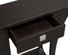 Decorate in style with the contemporary wonder of this Manila console table. Curved legs create a beautiful, flowing design that's sure to make a chic statement. Zinc hardware puts a shining touch on this gorgeous espresso hall table, while the convenient storage drawer lets you access your wallet and keys in a jiff. Plus, a lower shelf gives you the space to add a little pop of colour to your home decor.