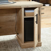 Bring a subtle, woodsy feel and top-notch construction to your office with this Mason Peak L-shaped desk. Featuring a melamine-finished surface that is heat-, stain- and scratch-resistant, this piece is ready to tackle big projects, with durability for display. Two drawers can house your office essentials, while the lower drawer holds letter-, legal- or European-size files. Plus, a cabinet with an adjustable shelf makes easy work of those pesky binders and books. Finished in a light, natural tone, this desk seamlessly adds a touch of a modern farmhouse aesthetic to your office.