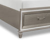 Max Platform Storage Bed with Headboard & Frame, LED, Vegan Leather, Glam, Silver - King Size