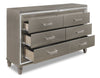 Designed to help your bedroom reach its full sparkling potential, this Max dresser's unique details combine to create a stylish and functional addition to your lifestyle. Bevelled mirror trim around the outer edge lends a dramatic enhancement while transparent acrylic handles add the perfect touch of glamorous gloss. Six deep drawers lend plenty of space for clothes plus two hidden drawers inside provide a designated space for jewellery. Enjoy the glitzy presentation this Max dresser brings to your room.