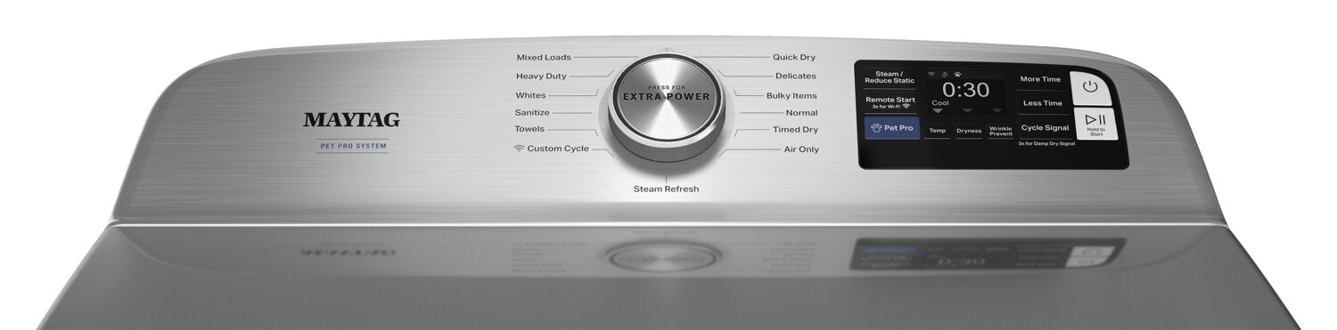 Dry Cycles | Bulky Items, Custom Cycle, Delicates, Heavy Duty, Normal, Quick Dry, Regular, Sanitize, Steam Refresh, Timed Dry, Towels, Whites, Wrinkle Control |