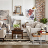 - Add an abstract, modern accent to your home with the rug's brown, grey, beige, black and cream pattern.