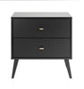 The Prepac Milo 2-Drawer Nightstand is a modern take on a retro look, with a sleek mid-century modern design that adds a touch of vintage styling to your bedroom. Two full sized drawers provide ample room for all your bedside necessities, keeping the area around your bed organized. The tapered solid wood legs and inset drawers deliver a clean and modern look to your bedroom. Brushed brass finished knobs add to the retro-chic design of this functional and fashionable nightstand. Style this nightstand on its own, or combine it with any of the products in the Milo collection for a timeless look.