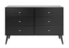 The Prepac Milo 6 drawer dresser is a modern take on a retro look, with a sleek mid-century modern design that adds a touch of vintage styling to your bedroom. Six drawers run smoothly on metal glides, offering easy access to storage for clothing and bedroom items. The tapered solid wood legs and inset drawers deliver a clean and modern look to your bedroom. Brushed brass finished knobs add to the retro-chic design of this functional and fashionable dresser. Style this dresser on its own, or combine it with any of the products in the Milo collection for a timeless look.