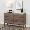 The Prepac Milo 6 drawer dresser is a modern take on a retro look, with a sleek mid-century modern design that adds a touch of vintage styling to your bedroom. Six drawers run smoothly on metal glides, offering easy access to storage for clothing and bedroom items. The tapered solid wood legs and inset drawers deliver a clean and modern look to your bedroom. Brushed brass finished knobs add to the retro-chic design of this functional and fashionable dresser. Style this dresser on its own, or combine it with any of the products in the Milo collection for a timeless look.
