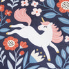 | Pattern | A colourful unicorn and floral design on a navy background. |